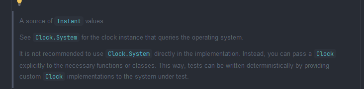 kotlinx-datetime = { module = "org.jetbrains.kotlinx:kotlinx-datetime", version.ref = "datetime" }⏱️ Clock Instance
